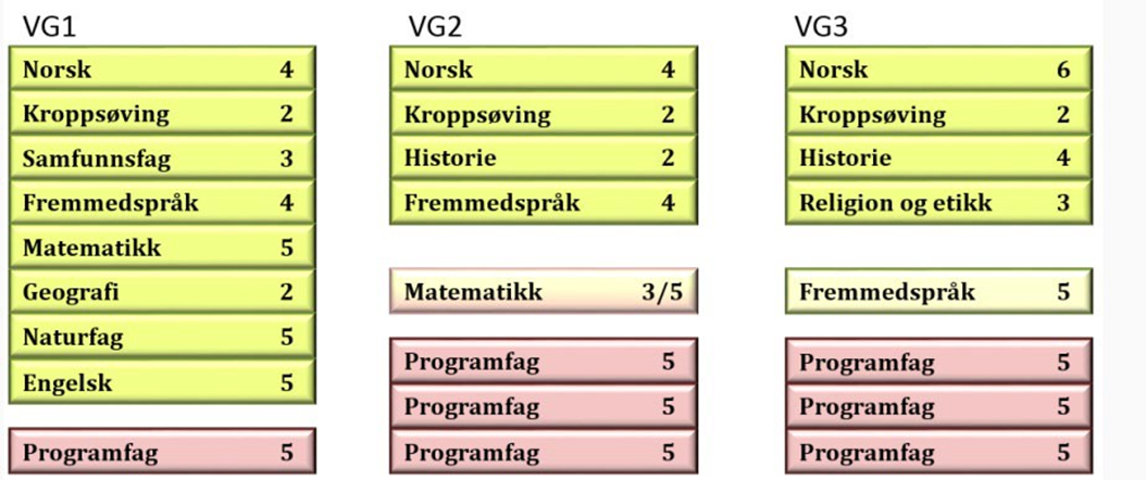 Alle elever skal ha matematikk i Vg2, enten det er 2P eller R1. Matematikk 2P avsluttes i Vg2 – men elever kan fortsette med R2 i Vg3 dersom de ønsker det.