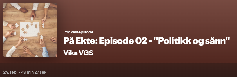 Her får vi høre fire elever fra tre ulike skoler snakke om alt fra partipolitikk og skolemat, til moter, gruppepress og det å ha sin helt egen stil i en verden full av kloninger i merkeklær. Vi ønsker at podkasten skal inspirere til nysgjerrighet og dialog, og at elevene som deltar i panelet kan være forbilder som viser at man kan være både enig og uenig, og fortsatt snakke sammen.